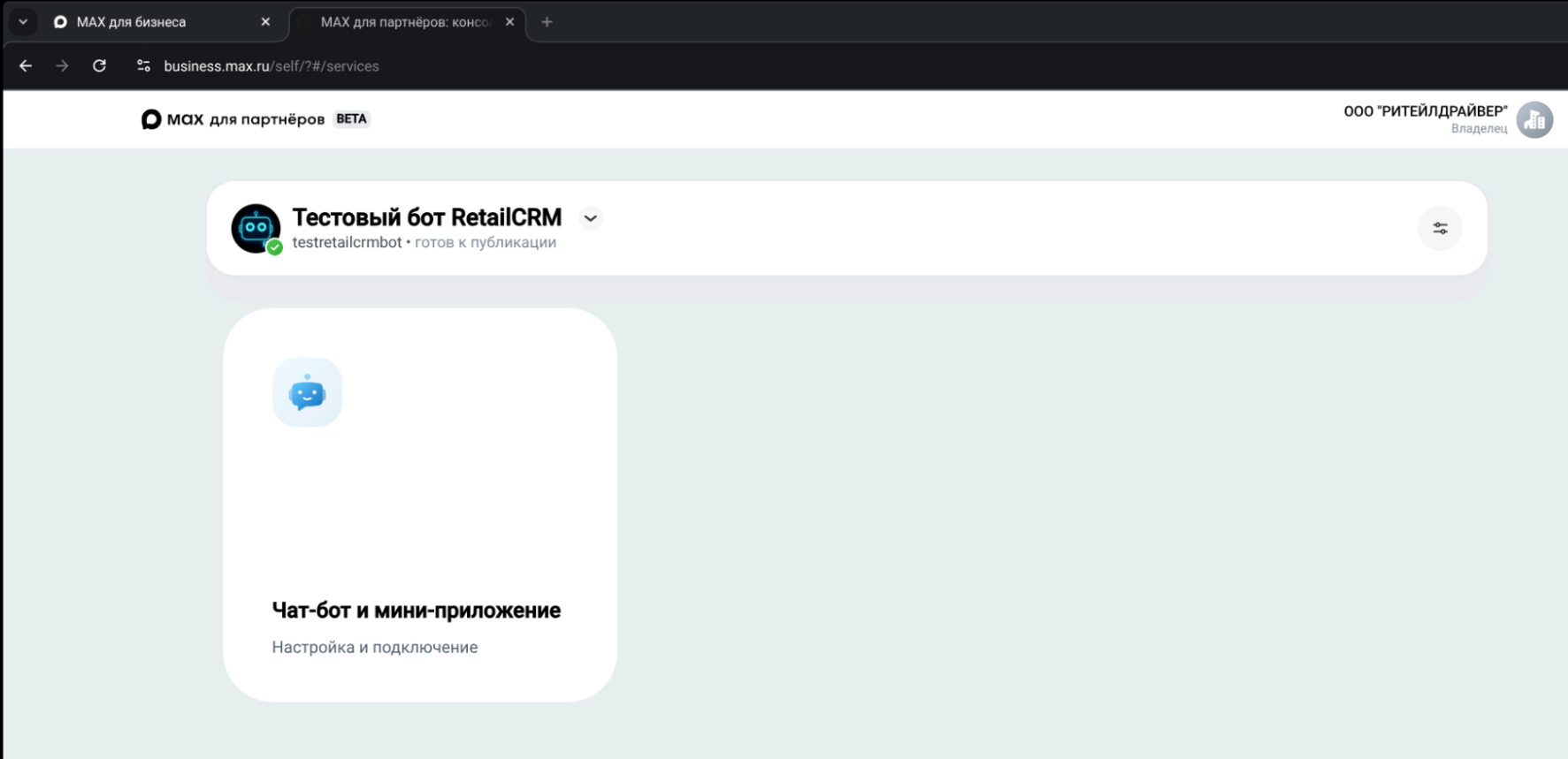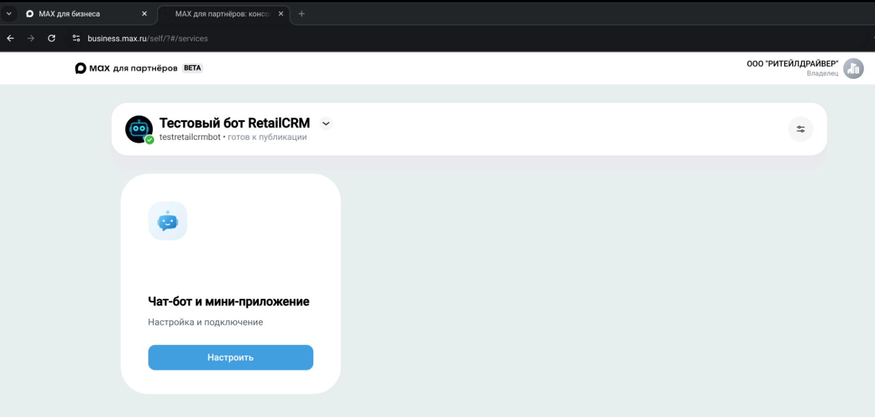 Первый и самый важный этап - создание и настройка чат-бота на стороне платформы MAX. Для этого ваша организация должна быть зарегистрирована в РФ как юридическое лицо.