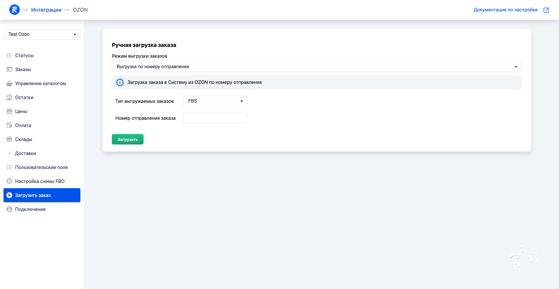 В настройках модуля есть возможность выгрузить заказы из Ozon в Систему в двух режимах.