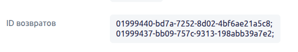 в пользовательское поле ID возвратов автоматически загружаются уникальные идентификаторы запроса на возврат в системе мерчанта;