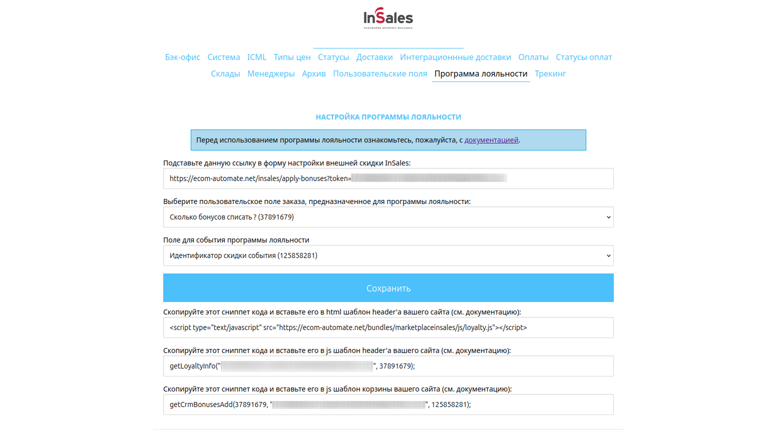 Для использования программы лояльности в магазине на платформе InSales необходимо выполнить ряд действий с учетом особенностей обеих платформ.